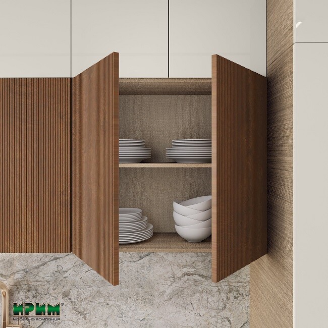 - Два модула с две врати и рафт с възможност за вграждане на мивка МФ-Крийм гланц-11-23 - 80/55/87см.