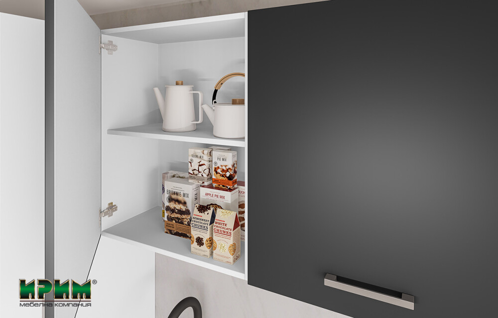- Лице: МДФ Бяло гланц 18мм и МДФ Карбон мат 18мм
