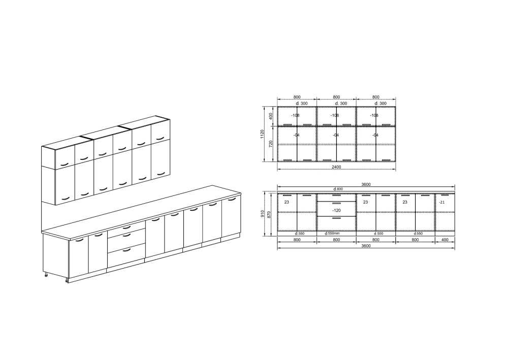 - Три долни модула с две врати и плот, възможност за вграждане на мивка БФ-Антрацит гланц-05- 23 - 80/55/87см.