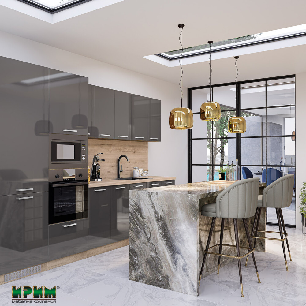 Кухня Сити 9080 впечатлява с модерен и елегантен дизайн в изтънчена комбинация от гланцов антрацит и топъл дъб сонома. Изработена от висококачествен МДФ, тя предлага плавно затваряне на вратите, функционални модули и възможност за вграждане на мивка и уреди. Перфектен избор за съвременния дом, който търси стил и удобство в едно.