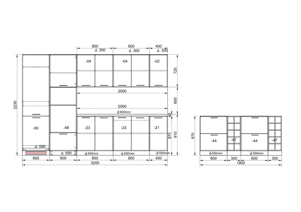 - Два долни модула с две врати и плот, възможност за вграждане на мивка АРФ-Антрацит гланц-05- 23 - 80/55/87см.