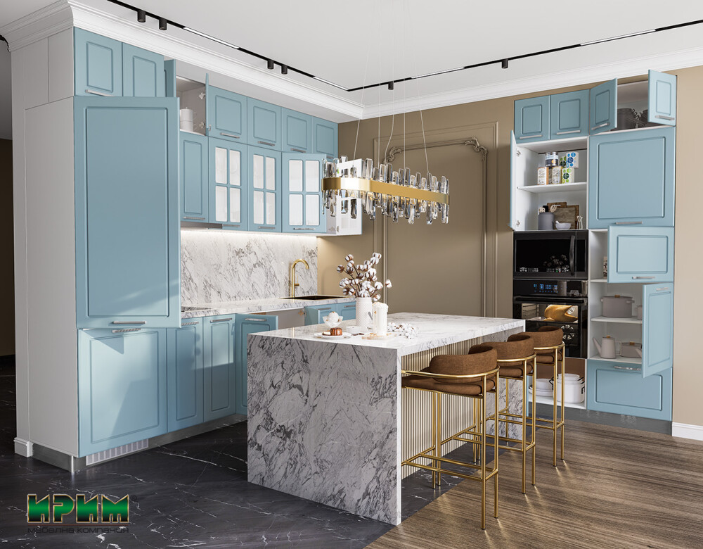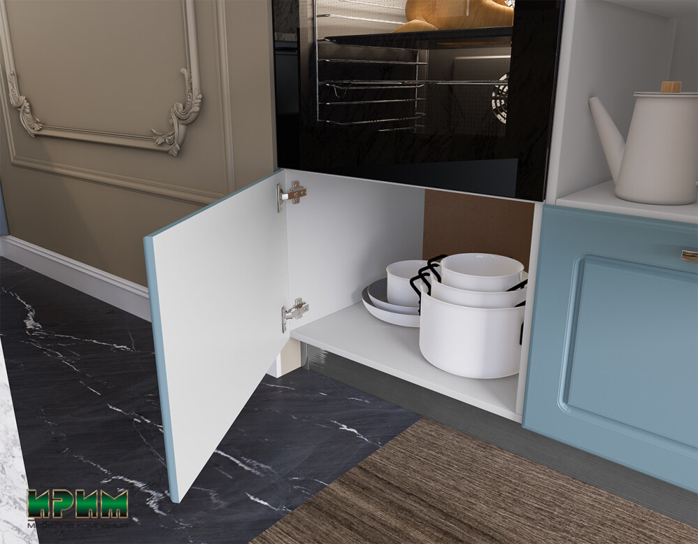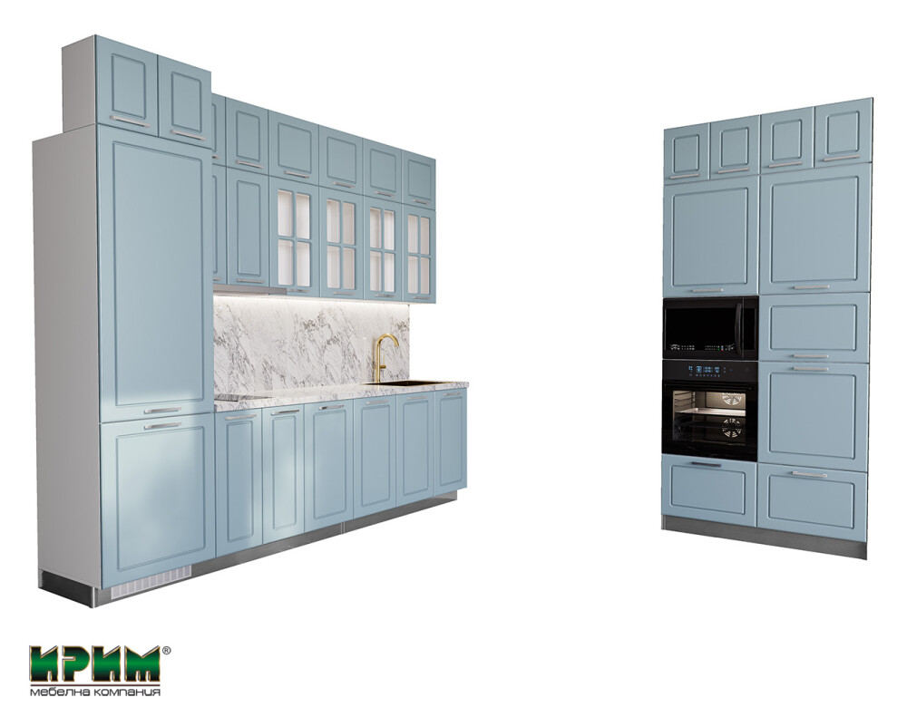 Кухня Сити 9123 съчетава изисканост и практичност в модерна цветова комбинация. Благодарение на висококачествения МДФ, плавното затваряне на вратите и възможността за вграждане на уреди и мивка, кухнята предлага максимален комфорт и функционалност. Елегантният контраст между матовия син деним и гланцовия антрацит създава усещане за стил и уют във всеки дом.