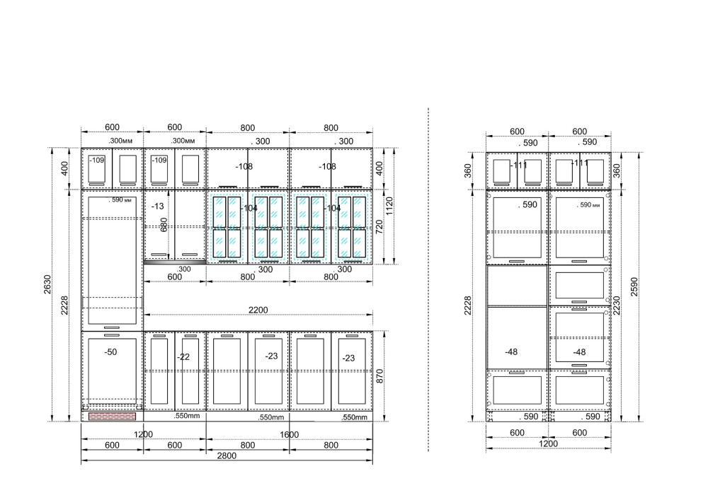 - Два колонни модула с възможност за вграждане на фурна и микровълнова с височина 38см БФ-Деним мат-06 -48 - 60/59/223см.