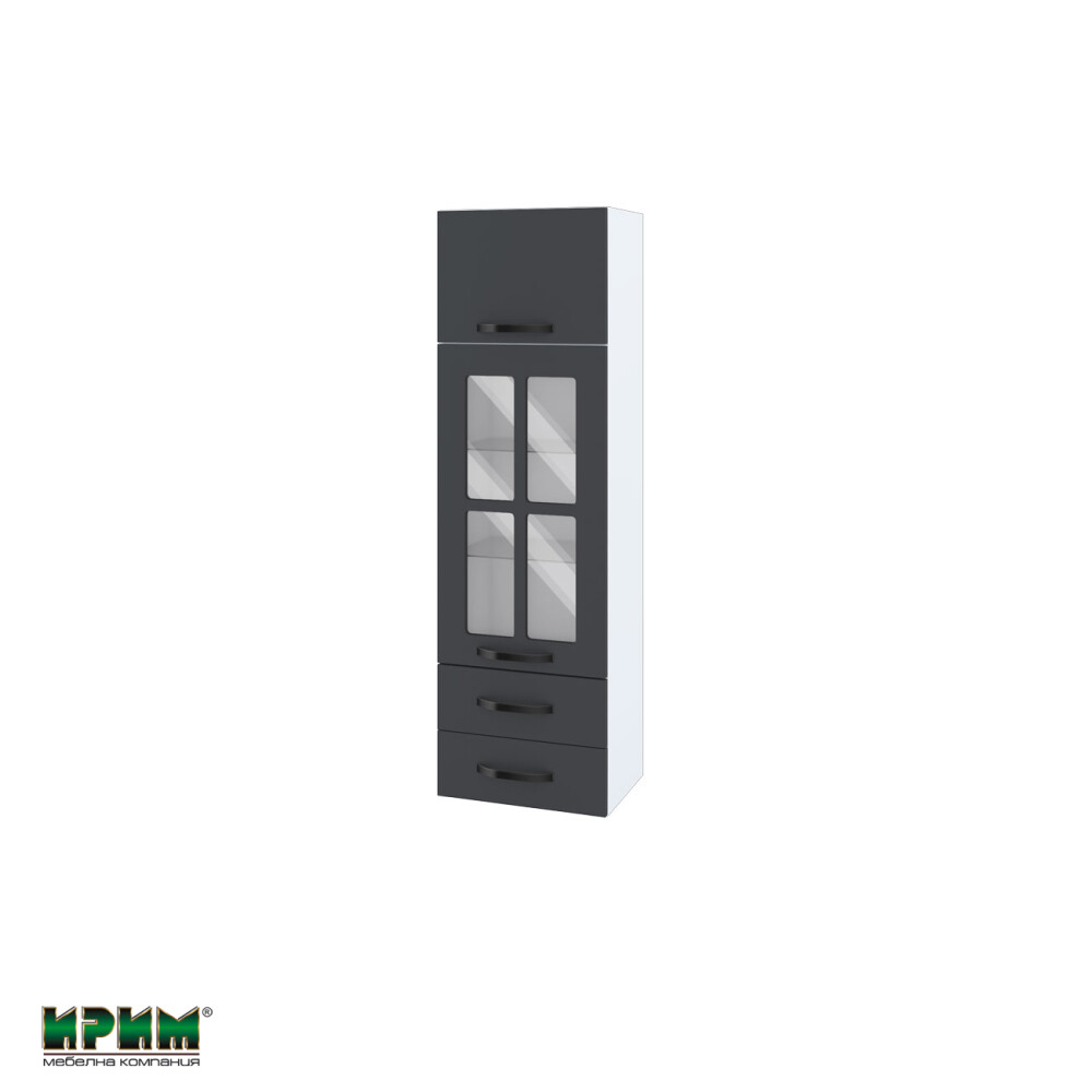 Горен модул с врата,витрина и две чекмеджета БФ-Карбон мат-11-101