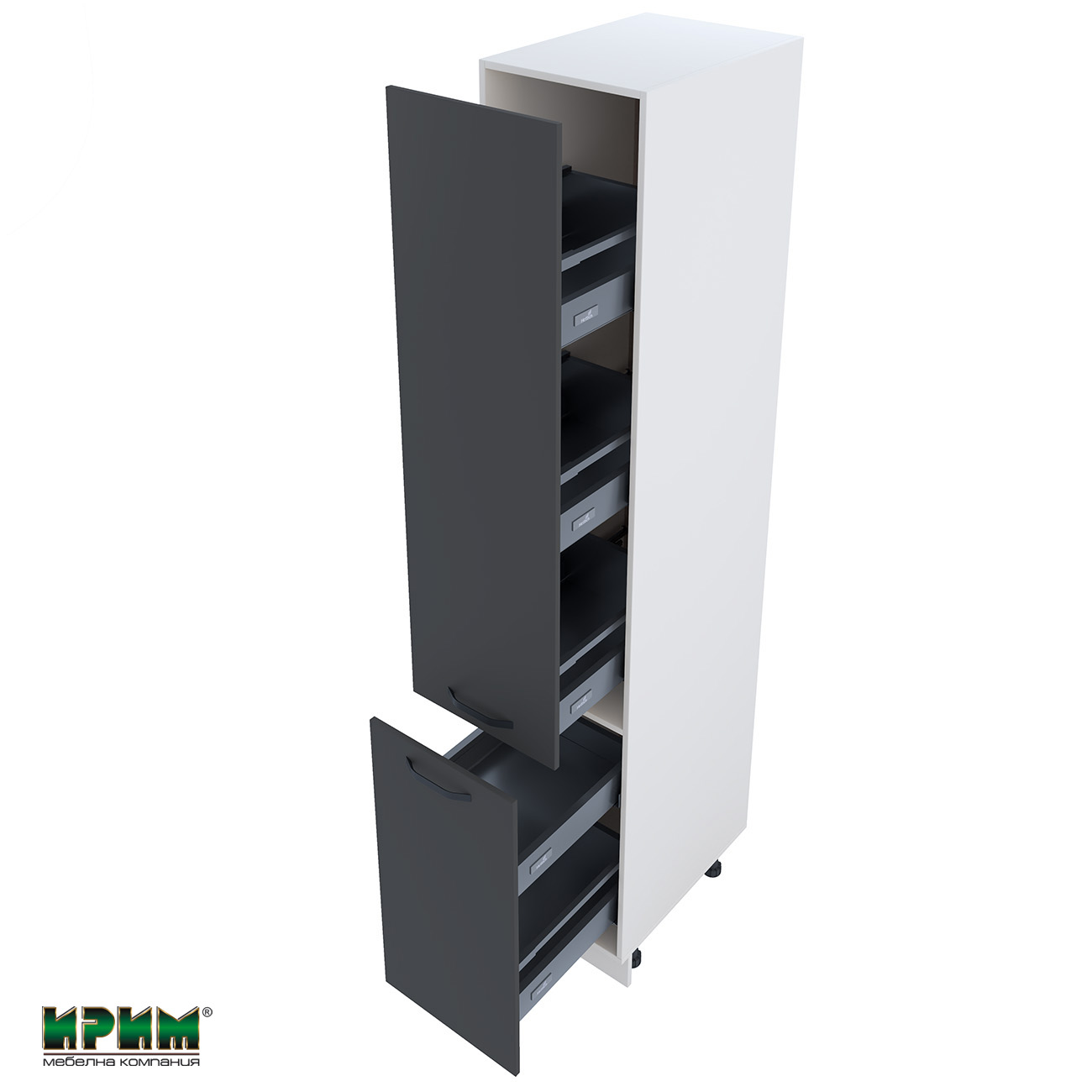 Кухненските модули БФ – Карбон мат впечатляват с модерен индустриален стил и изтънчена визия. Изработени са с корпус от ПДЧ 16 мм в цвят Бяло гладко и врати от МДФ 18 мм в дълбок Карбон мат, които създават елегантен контраст и съвременна атмосфера. Здрави, функционални и устойчиви при ежедневна употреба, тези модули са идеален избор за стилна и модерна кухня.