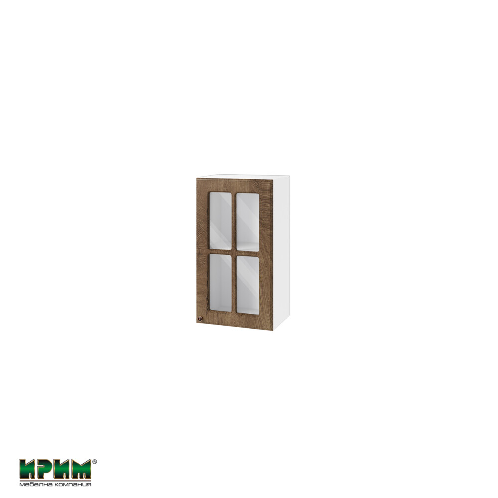 Горен модул с витринна врата и рафт БФ-Дъб натурал-06-102