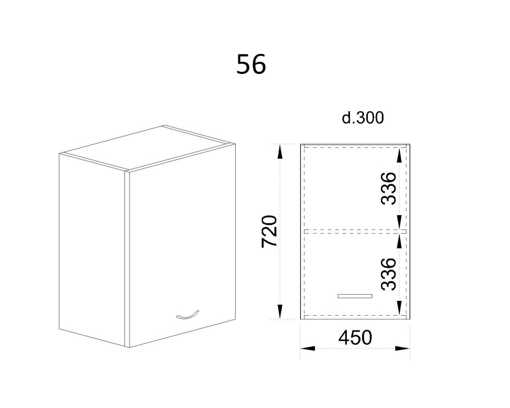 Горен модул с врата и рафт АРФ-Бяло фладер-04-56 (ляв)