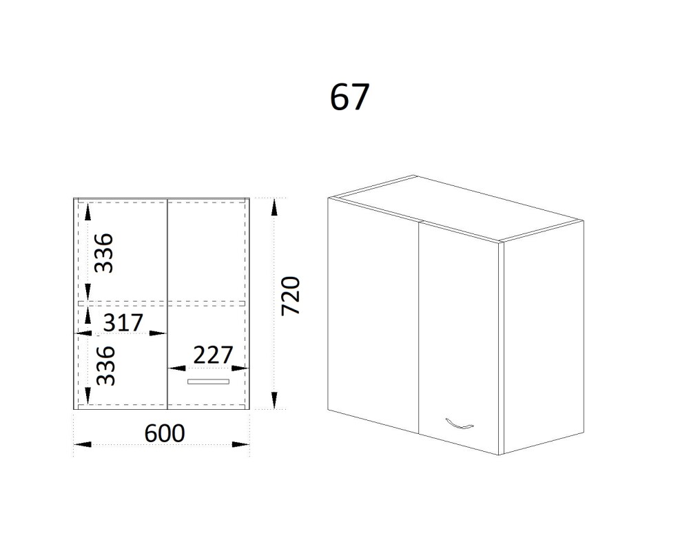 Горен модул за ъгъл с врата и рафт АРФ-Бяло фладер-04-67 (ляв)