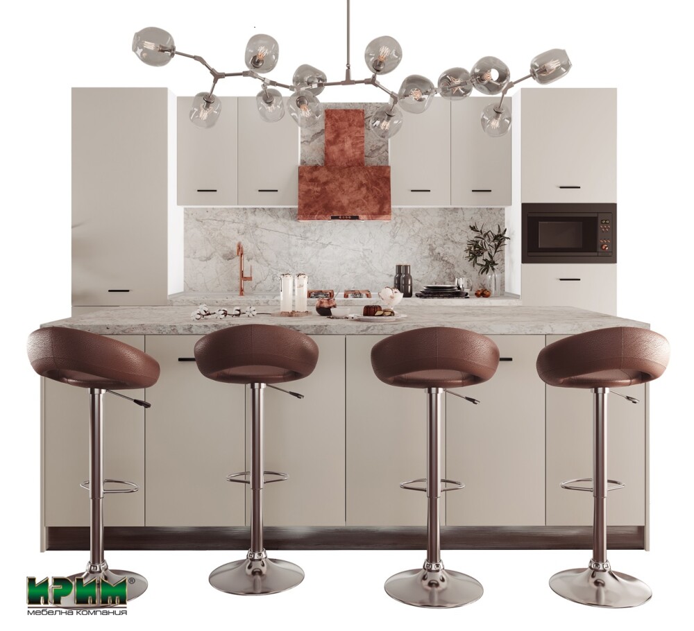Модулна кухня Сити 9083 в цветове Сатен и Бяло гладко – модерна, практична и стилна. Изработена от ПДЧ 16 мм с плавно затваряне на вратите и удобен кухненски остров за повече пространство. Перфектен избор за съвременни кухни с елегантна визия и функционален дизайн.
