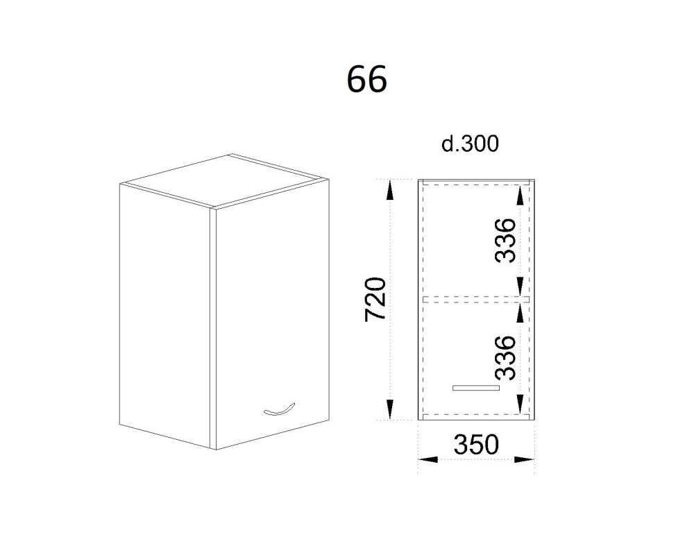 Горен модул с врата и рафт БФ-Бяло фладер-04-66 (ляв)