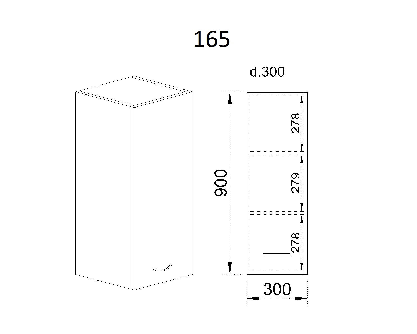 Горен модул с врата и два рафта БФ-Бяло фладер-04-165 (ляв)