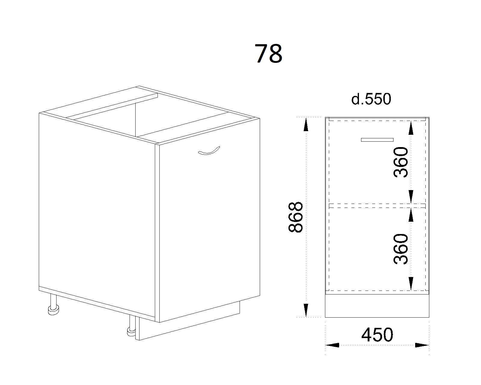Долен модул с врата и рафт БФ-Бяло фладер-04-78 (ляв)