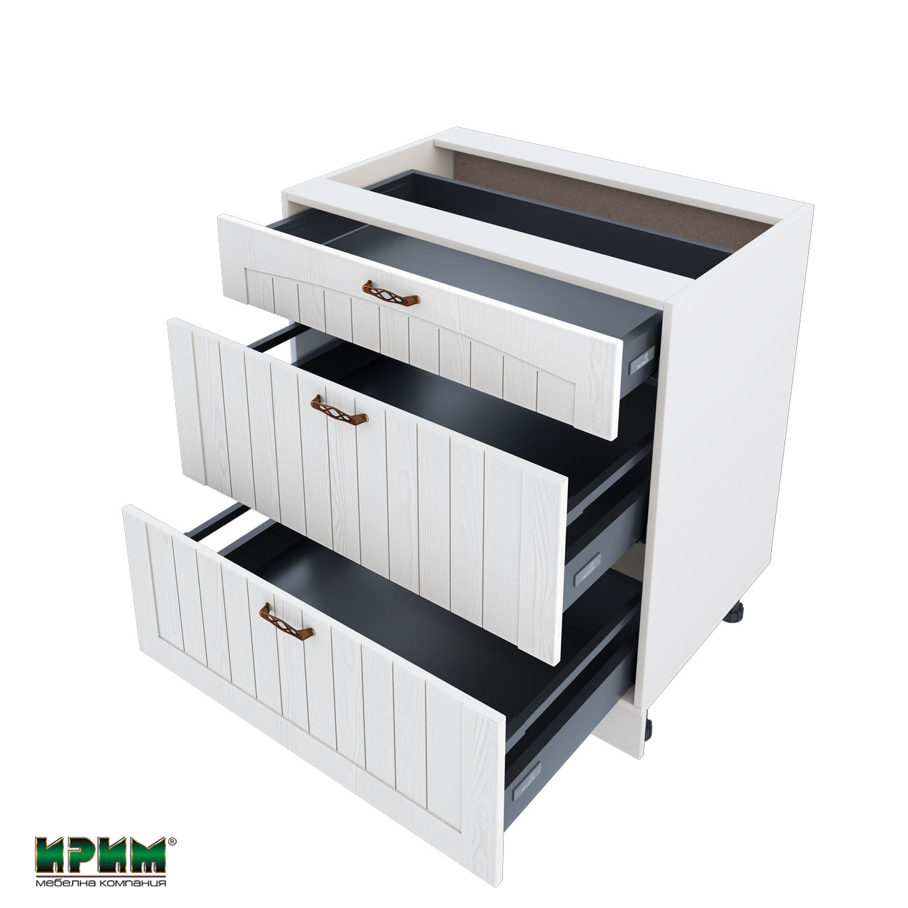 Долен модул с три чекмеджета с плавно затваряне БФ-Бяло фладер-04-55