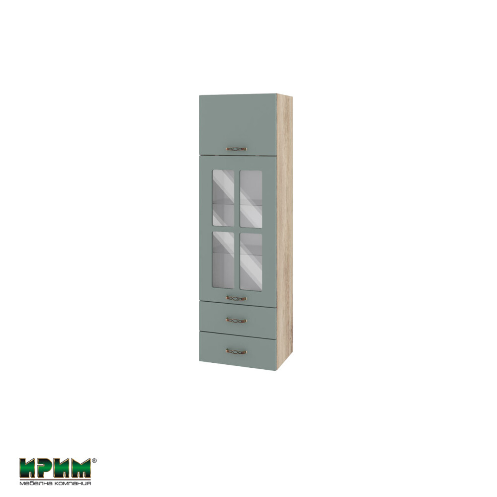 Горен модул с врата,витрина и две чекмеджета АРФ-Олив мат-11-101